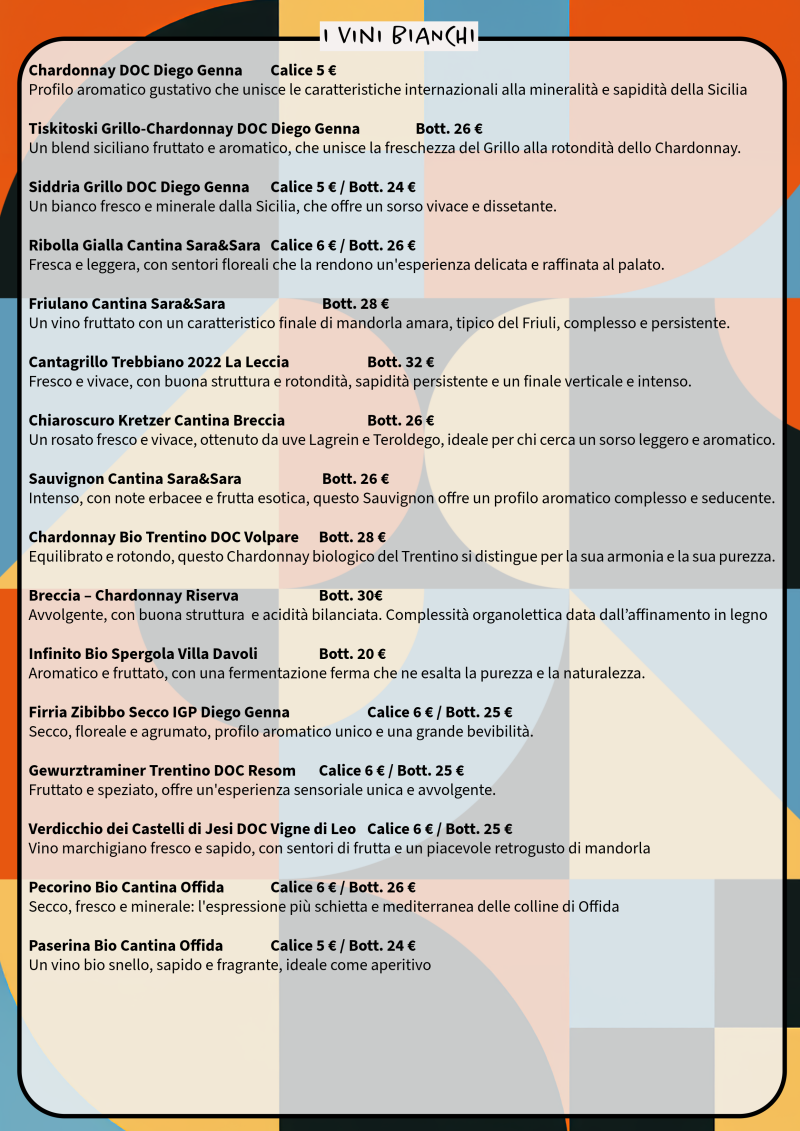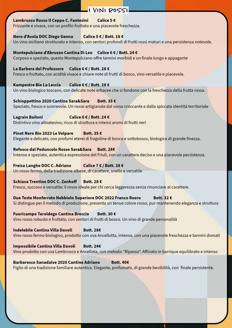 La nostra Carta dei Vini è una selezione curatissima di vere eccellenze artigianali: dalle piccole cantine italiane e francesi ai vini naturali e macerati. Ogni bottiglia racconta una storia vera e non convenzionale!
